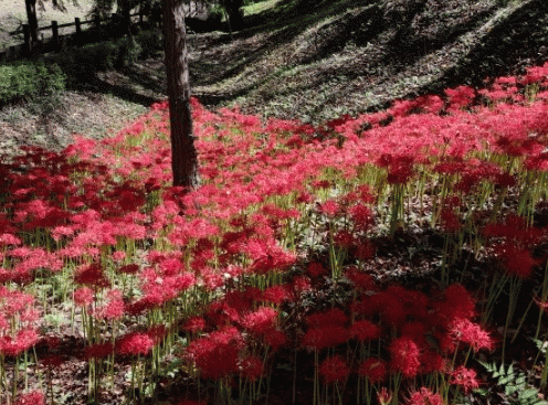 가을꽃인 꽃무릇은 꽃과 잎이 서로 만나지 못하는 독특한 특성 덕분에 상사화로도 불린다.