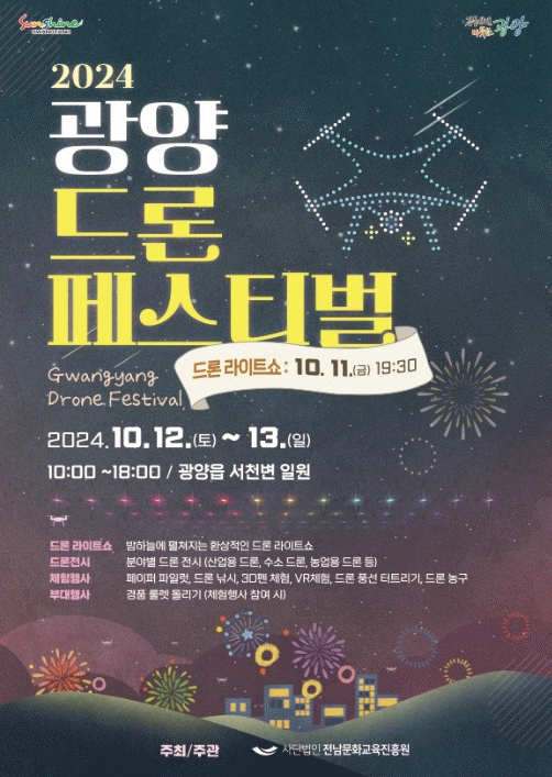 한편, 드론 페스티벌이 개최되는 시기에 광양읍 서천변 일원에서 광양숯불구이 축제 또한 계획돼 있다.