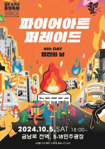 충장 파이어아트 퍼레이드는 5일 오후 6시부터 8시 30분까지 금남로 일대에서 3부로 나뉘어 열린다.