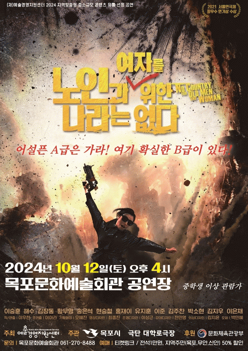 이번 공연은 예술경영지원센터의‘2024년 지역맞춤형 중소규모 콘텐츠 유통’사업에 공모 선정되어 문화체육관광부의 후원을 받아 목포문화예술회관에서 단독 개최된다.