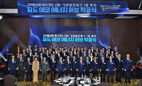 이날 착공식은 1조 4천억 원 규모의 ‘묘도 LNG 터미널 사업’ 지역활성화 투자 펀드 3호 사업 선정과 ‘묘도 수소산업 클러스터 기회발전특구’의 첫 투자 실현을 기념하며 열렸다.