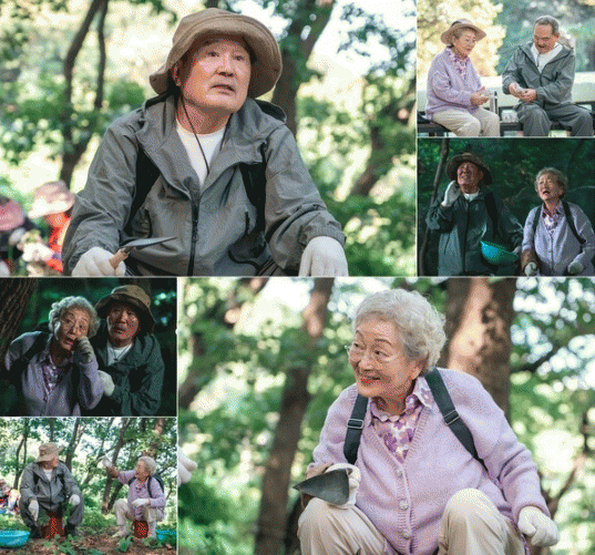 오늘(4일) 공개된 스틸에는 산에서 즐거운 시간을 보내는 길례와 만득의 모습이 담겨 있다. 두 사람은 함께 아들 제사상에 올릴 고사리도 캐는가 하면 김밥도 먹으며 소풍 분위기를 제대로 느낀다.