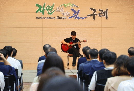 이날 행사에서는 건설과 배지훈 주무관의 수준 높은 기타 연주에 이어 한국종합예술학교 학생들이 구례를 여행한 후 AI 기술을 활용하여 만든 에니메이션과 국제 우호 협력 도시인 중국 지주시 교환 공무원의 연수과정이 담긴 영상을 함께 시청했다.
