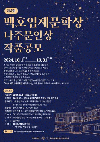 자세한 내용은 나주시 홈페이지 공고문을 확인하거나 백호문학관으로 문의하면 된다.