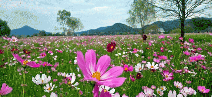코스모스는 10월 9일부터 13일까지 열리는 축제 기간에 맞춰 만개해 절정을 이룰 것으로 기대된다.
