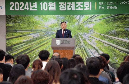 이날 조회에서는 담양인문학 문해교실 시화전 수상자와 제28회 노인의 날 기념 유공 모범 노인, 효행자에 대한 시상을 진행했으며, 추석 종합상황실 운영, 각종 사업 추진으로 열심히 일해준 공직자들의 노고에 감사의 마음을 전했다.