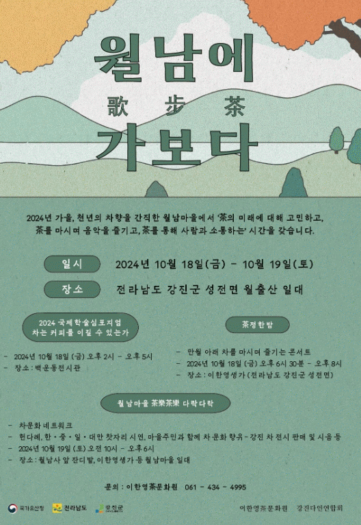 둘째 날인 19일에는 월남사 잔디광장을 비롯해 월남마을 일대에서 ‘제5회 강진 찻자리경연대회’ 및 ‘월남마을 다락다락(茶樂茶樂)’ 행사를 펼친다.