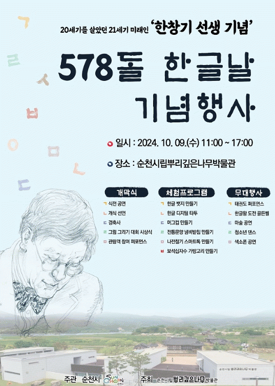 순천시립뿌리깊은나무박물관 관계자는 “이번 한글날 행사를 통해 한글의 소중함과 우리 문화의 뿌리를 되새기고, 한창기 선생의 뜻을 기리는 시간을 가지시길 바란다”고 말했다.