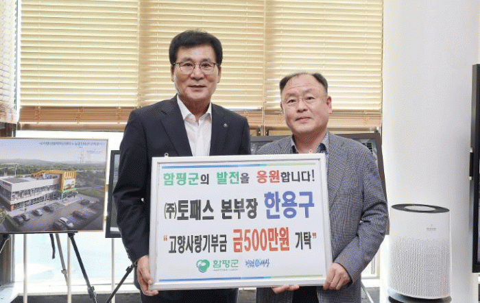 7일 함평군은 “주식회사 토페스 한용구 본부장이 9월 고향사랑e음을 통해 함평군에 온라인 기부를 실천했다”고 밝혔다.