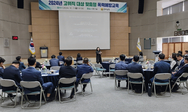교육은 명창환 전남도 행정부지사, 실국장 등 45명이 참석한 가운데 성인지 감수성 함양과 상호 존중하는 성평등한 조직문화 조성을 위해 진행됐다.