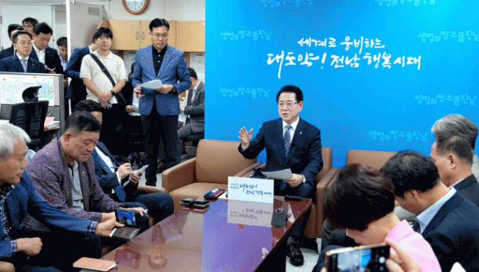 김영록 지사는 이날 간담회에서 “올해 벼멸구 피해는 폭염과 이상고온 등 기상 재해로 더욱 심화됐다”며 “도와 국회의원들이 적극적으로 나서 대응했고, 농림축산식품부 장관이 벼멸구 피해를 재해로 인정한다고 발표해 피해 농민들에게 위로가 됐다.