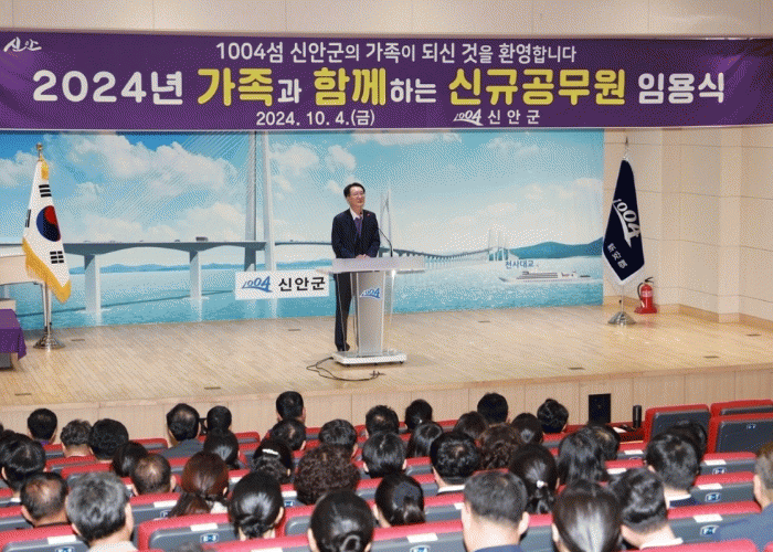 박우량 신안군수는 “사계절 문화예술과 꽃이 피어나는 신안의 가족이 된 것을 진심으로 환영하고 훌륭한 인재로 키워주신 부모님들과 가족들께도 감사드린다”라며 “신안군 공무원으로서의 자부심을 갖고 군민이 행복한 신안을 만드는데 함께 힘써 주기를 바란다”라고 당부했다.