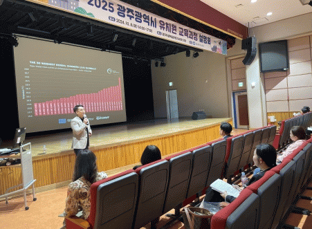 설명회는 미래교육연구소 오기영 소장이 ‘미래사회를 대비하는 유치원 교육’을 강연하고, 이어 효천다솜유치원 손금옥 교사가 ‘2025학년도 광주광역시 유치원 교육과정’을 안내하는 순으로 진행됐다.