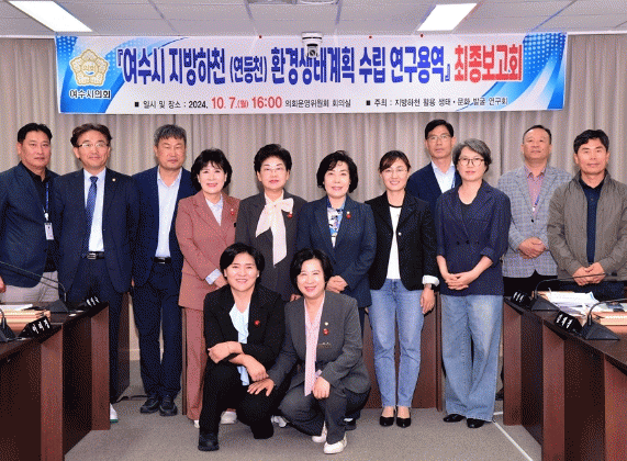 여수시의회에 따르면 10월 7일 연구회는 주변 도심과 연계한 환경·생태 연구를 통해 연등천을 블루그린네트워크로 조성하기 위한 용역 최종 보고회를 개최했다.