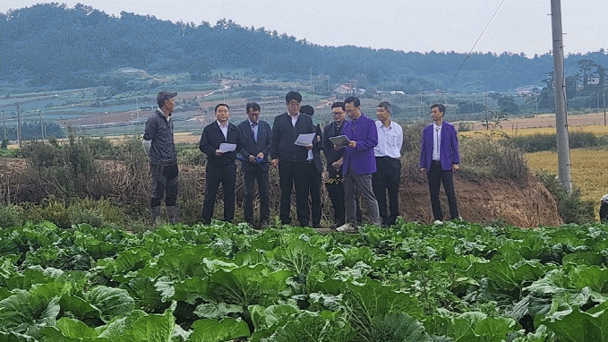 이어 9월 파종, 정식기 고온과 가뭄, 집중호우로 어려움을 겪고 있는 배추 재배 현장을 방문하여 농가의 애로사항을 청취하고, 생육관리를 위한 약제방제 및 영양제 살포 등 맞춤형 농가 재배기술 지도에 만전을 다할 것을 당부했다.