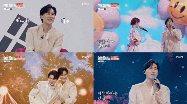 먼저 신유는 김다현과 자신의 곡 '일소일소 일노일노' 듀엣 무대를 펼쳤다. 신유는 김다현과 눈을 맞추며 감미로운 목소리로 하모니를 이뤘다. 신유는 "다현 씨가 확실히 노래 잘한다. 역시 대단한 가수"라며 칭찬을 아끼지 않았다.