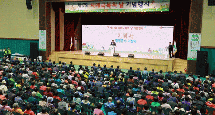 기념식은 함평군노인복지관 건강체조단의 체조와 노래를 시작으로 치매극복 유공자 표창, 치매를 소재로 한 신마당극 ‘심청전’ 관람 등으로 이어졌다.