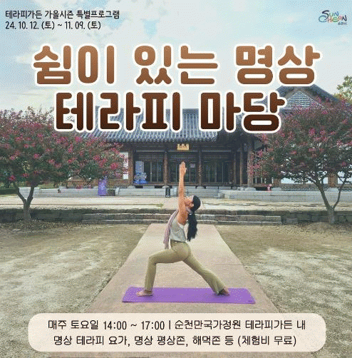 명상테라피는 14시부터 17시까지, 다른 쉼 테라피는 9시부터 17시까지 운행된다.