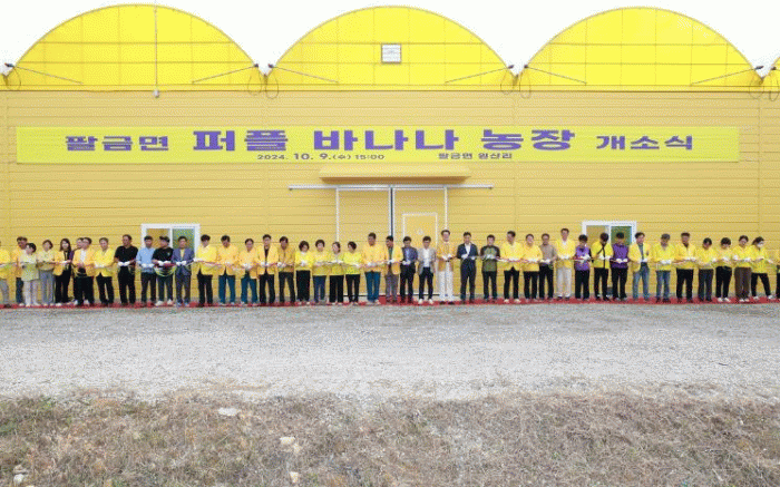 이번에 문을 연 퍼플 바나나 농장은 지방소멸대응기금과 군비를 포함 총 1,550백만 원의 사업비가 투입돼 복합환경제어시스템과 난방시설 및 자동 양액설비 등을 갖춘 6,006㎡ 규모의 내재해형 스마트 온실로 지어졌다.