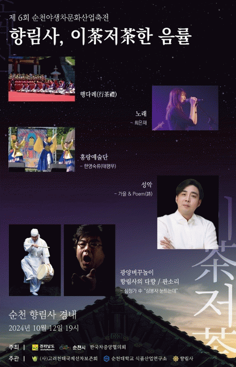 한편, 학술대회가 끝난 이후 오후 6시부터 향림사, 이차(茶)저차(茶)한 음률 이라는 주제로 음악회가 진행된다.
