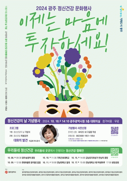자세한 사항은 광주 정신건강 문화행사 누리집 또는 전화로 확인할 수 있다.