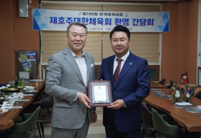 지난 13일 경남 김해의 한 식당에서 열린 재호주 대한체육회 선수단 환영 간담회에는 전갑수 체육회장, 최성환 재호주 대한체육회장 등 양 기관 임직원 30여명이 상호 기념품을 교환하며 우의를 다졌다.