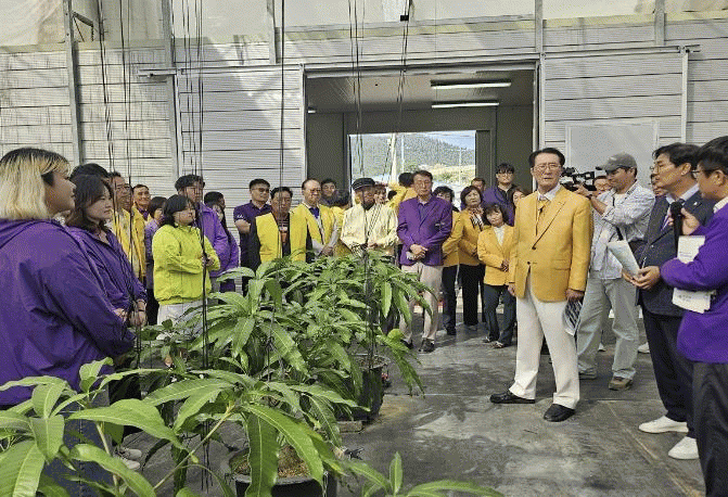 망고를 재배하는 임대농장은 ‘망고 학교’로 이름 짓고, 시설규모 8,118㎡ 12연동 스마트 온실로 5명의 청년농업인들이 참여해 올해 첫 수확을 올리는 성과를 냈다. 내년부터 본격적인 수확이 예상되며 연간 약 5톤의 애플망고를 생산할 계획이다.