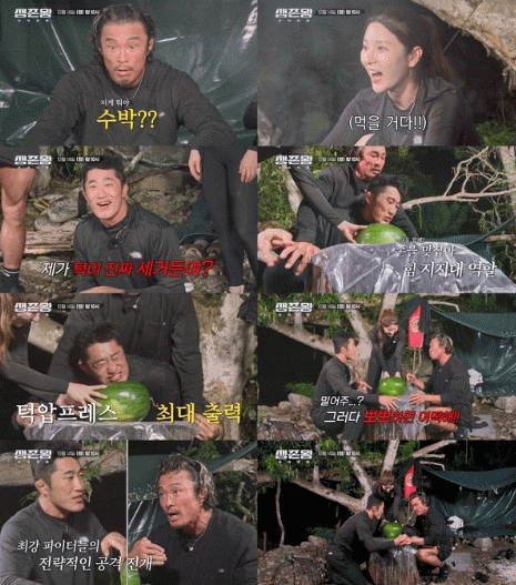 배고픔에 굶주린 김동현은 “10초는 너무 짧다”며 자신 없는 모습을 보이다 수박을 주겠다는 말에 화색이 돌았고, “제가 턱이 세다. 턱으로 해보면 안 되냐. 제발 한 번만…우리 굶었다”라며 애절하게 애원했다.