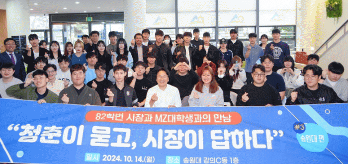 강 시장은 이날 송원대학교를 찾아 MZ 대학생과의 소통 창구인 ‘청춘이 묻고 시장이 답하다’를 진행했다. 이는 대학생 청년들과 눈맞춤 소통을 통해 학생들의 꿈을 응원하고, 청년들의 다양한 의견을 시정에 반영하기 위한 만남이다.