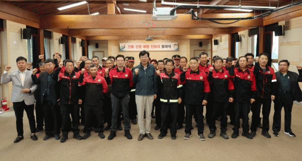 발대식은 산불방지를 위한 결의문 낭독, 산불관련 안전교육 동영상 시청, 개인용 진화장비 분배 등의 내용으로 이루어졌다.