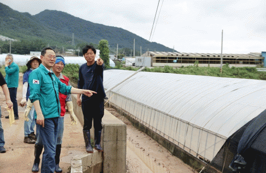 해남군에는 지난달 21일 하루동안 산이면 316.5㎜를 비롯해 3일 평균 262.4㎜의 집중호우로 곳곳에서 도로가 침수되고, 소하천과 저수지 제방이 유실되는 등 공공시설 61개소를 비롯해 주택 106가구 침수, 벼와 배추, 비닐하우스 등 농작물 1,624㏊가 침수 및 도복 피해를 입은 것으로 잠정 집계됐다.