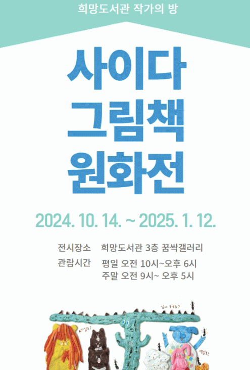 김미라 도서관과장은 “좋은 그림책을 전시 형식으로 선보이고 있는 작가의 방 기획전시는 사이다 그림책 원화전으로 11회째를 맞았다”라며 “희망도서관에서는 독자들이 책과 관련된 콘텐츠를 다양한 방식으로 즐길 수 있도록 여러 가지 흥미로운 사업을 추진 중이니 프로그램에 많은 관심과 참여를 부탁드린다”라고 전했다.
