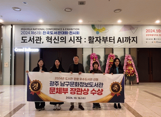 16일 남구에 따르면 문화체육관광부는 이날 오후 강원랜드 하이원리조트에서 제61회 전국 도서관대회 개회식을 열고 도서관 운영 및 발전에 이바지한 남구 문화정보도서관을 우수도서관으로 선정한 뒤 장관상을 수여했다.
