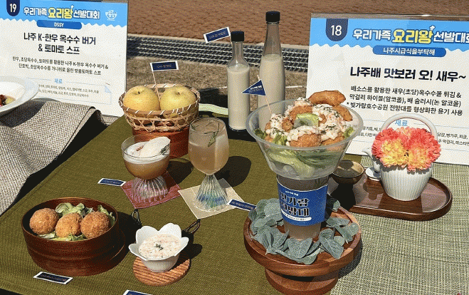 이 요리는 대표 특산물인 나주배로 만든 배 소스를 곁들인 새우, 초당옥수수볼 튀김과 막걸리 하이볼, 배 슬러시를 후식 메뉴로 선보였다.