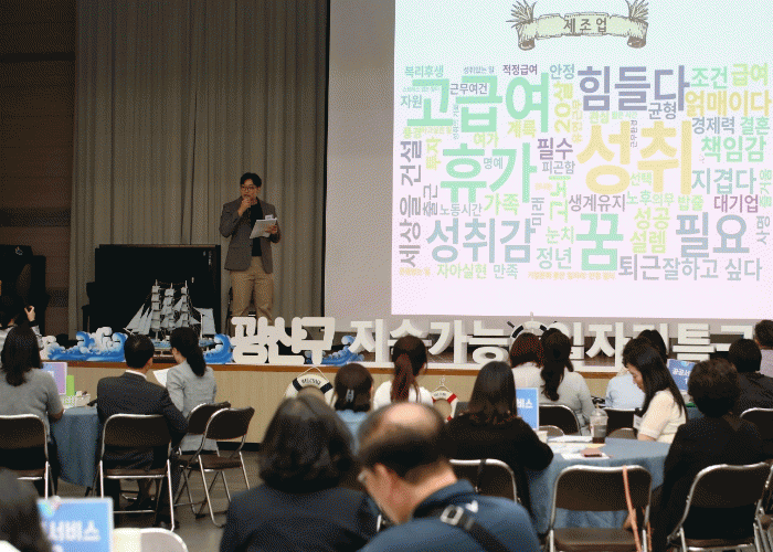 광산구는 19일 광산구청 7층 윤상원홀에서 시민 100여 명으로 구성된 지속가능 일자리 의제발굴단, 지속가능 일자리 사회적 대화 추진단과 함께 지속가능 일자리 의제 발굴을 위한 세 번째 사회적 대화를 이어간다고 밝혔다.