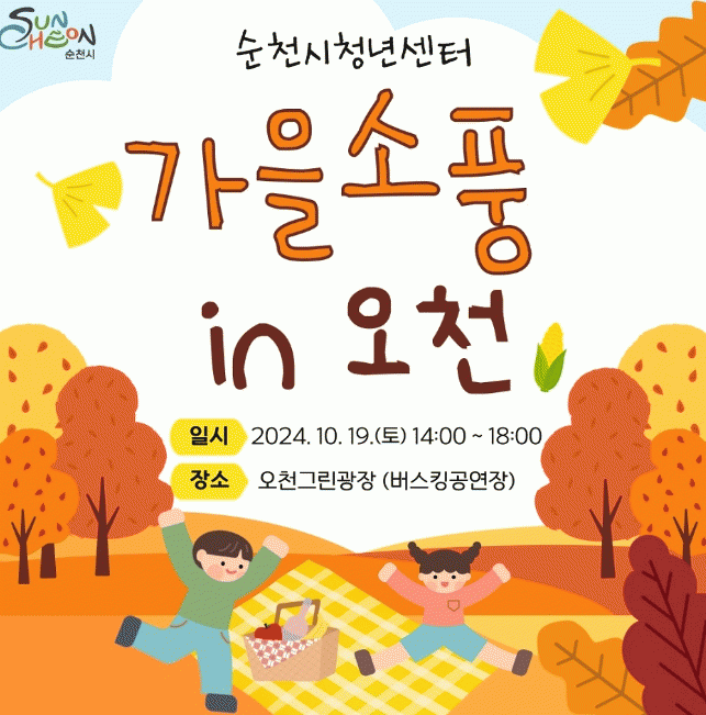행사는 청년공동체 주관으로 사전 및 현장에서 모집된 100명의 청년들이 도심 속 잔디광장에서 청춘감성을 가득 담은 맥주와 함께하는 비어요가로 가을소풍의 시작을 알린다. 이어, 가을정취를 흠뻑 느낄 수 있는 현악 앙상블과 보컬 공연이 아름다운 선율을 선사하고, 신나는 댄스팀이 볼거리 및 즐길거리도 제공한다. 특히 옵티머스프라임과 범블비 공연도 예정되어 있으며, 오천그린광장을 포토존으로 활용해 무료 사진 촬영 및 인화 서비스도 제공된다.