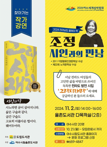 도서관 관계자는 “고단했던 할머니 혹은 어머니의 삶을 잠시 떠올리며 지역 방언을 통해 전해질 생생한 감동을 만나보시길 바란다”고 전했다.