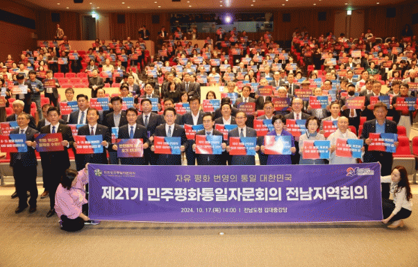 이날 개최된 민주평통 전남지역회의에는 김영록 지사와 전남도의회 이광일.이철 부의장, 시군협의회장 등 300여 명이 참석했으며 영상메시지와 퍼포먼스에 이어 정책설명, 활동보고, 정책건의 순으로 진행됐다.