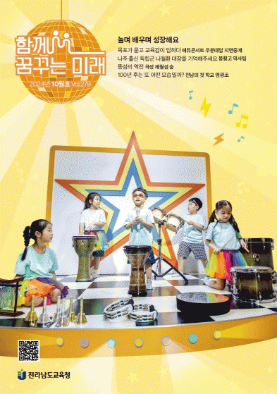 주목할 만한 교육현장 소식을 취재해 전하는 ‘함께 꿈’ 코너에는 목포교육지원청이 주관한 에듀콘서트 ‘우문대답’ 현장과 나주 봉황고 역사동아리 이야기를 실었다.