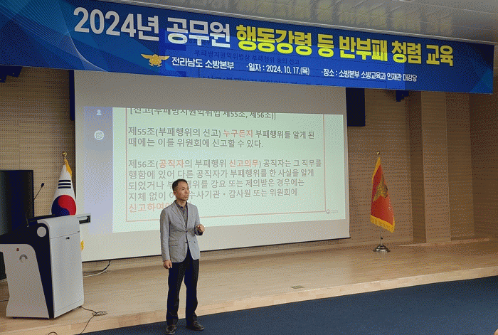 오승훈 본부장은 “공직자의 직무수행 중 발생할 수 있는 청렴 법규 위반행위를 사례 중심으로 교육해 직원들에게 큰 도움이 됐다”며 “이번 교육을 통해 전 직원이 한마음으로 청렴 전남소방을 만들 수 있도록 더욱 노력하겠다”고 전했다.