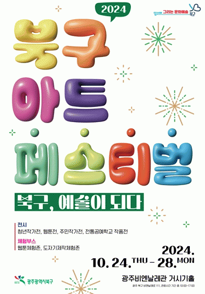 한편 이번 북구 아트페스티벌 ‘개막식’은 문인 북구청장과 작가, 주민 등 100여 명이 참석한 가운데 오는 25일 오후 1시 광주비엔날레 광장에서 열릴 예정이다.