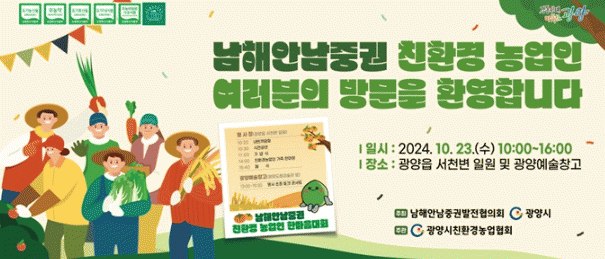 남해안남중권발전협의회와 광양시가 주최하고 광양시친환경농업협회(회장 강정형)이 주관하는 이번 대회는 친환경농업 회원 간의 정보 교류와 상호 협력체계 구축을 위한 자리로 남해안 남중권 친환경농업인 회원과 가족 470여 명이 참여한다.