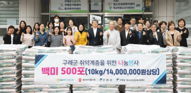김순호 군수는 “맛과 품질이 우수한 우리 지역의 쌀을 취약계층을 위해 후원해 주셔서 감사하다”며 “ 구례군에서도 취약계층 아동들이 미래인재로 성장할 수 있도록 최선을 다해 지원하겠다”고 말했다.