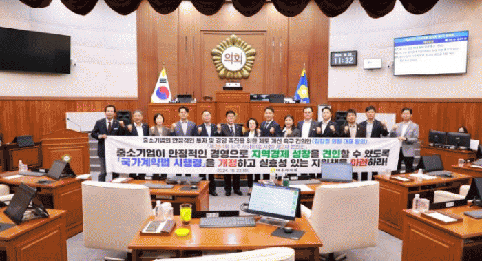 건의안을 대표 발의안 김강정 의원은 “중소기업은 국내 기업 중 99%, 전체 고용의 81%를 차지하며, 명실상부 지역경제의 중추적인 역할을 하고 있다”며, “중소기업의 성장과 발전을 도모하기 위해 각종 지원정책을 펼치고 있으나, 법과 제도적 측면에서 오히려 중소기업 판로에 걸림돌로 작용하고 있는 점이 있다”며 이에 대한 개선이 필요하다고 말했다.