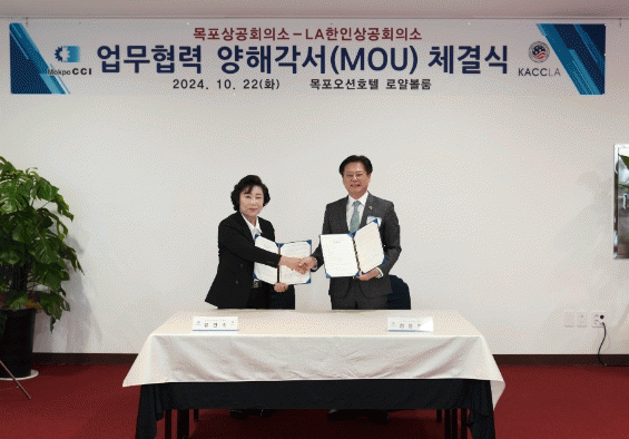 목포상공회의소는 지난 22일 목포오션호텔에서 LA한인상공회의소(회장 정동완)와 상호협력을 통한 기업 비즈니스 활동지원을 도모하기 위해 업무협약을 체결했다.