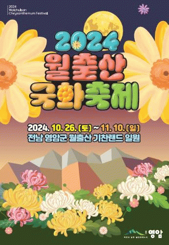 10/26부터 11/10일 영암군 월출산기찬랜드 일대에서 ‘국화의 빛으로 가을을 밝혀라’를 주제로 ‘2024 월출산 국화축제’가 열린다.