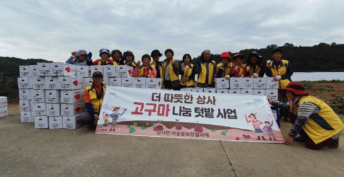 지정석 상사면마중물보장협의체 위원장은 “회원들과 함께 고구마를 심고, 기르고, 수확하는 따뜻한 정성이 수혜자 분들께 잘 전달되기를 바란다”며, “앞으로도 지속적으로 어려운 이웃들을 돕기 위해 적극적으로 활동하는 마중물보장협의체가 되도록 노력하겠다”고 전했다.