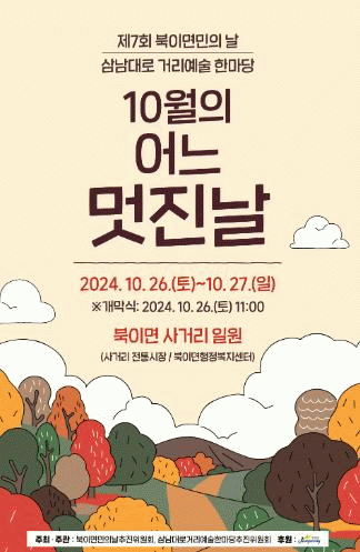 오는 26일, 27일 이틀간 북이면사거리 일원에서 ‘10월의 어느 멋진 날’ 행사가 열린다.