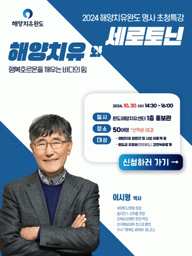 특강은 지역민과 이용객 등 50여 명을 대상으로 완도해양치유센터에서 대면으로 진행되며, 희망완도(유튜브)를 통해 비대면으로도 진행한다.