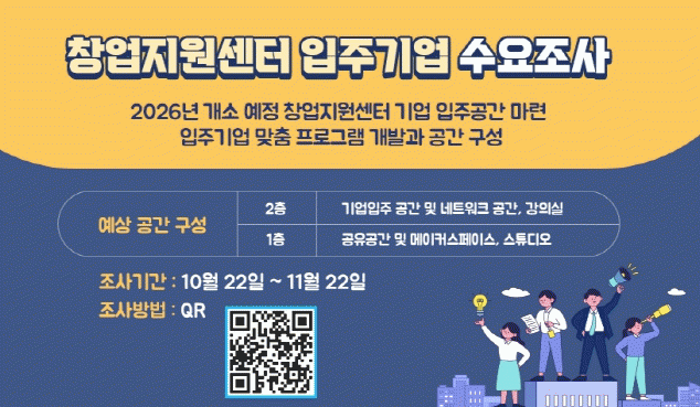 이반 수요조사 결과는 창업지원센터 입주기업의 공간 구성과 기업 맞춤형 프로그램 개발 등을 위한 기초자료로 활용될 예정이다.